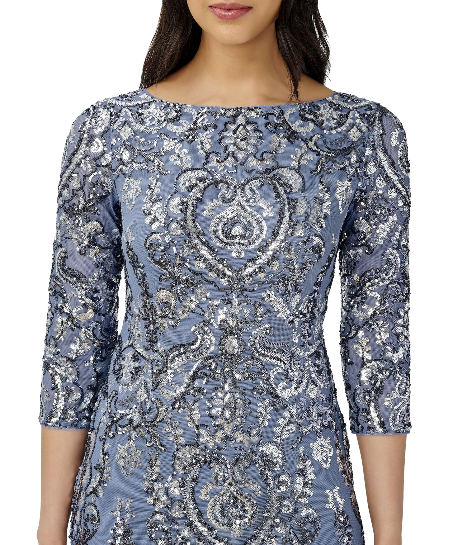 - Look gorgeous and sleek in the Adrianna Papell® Stretch Sequin Sheath Dress with 3/4 Length Sleeves.