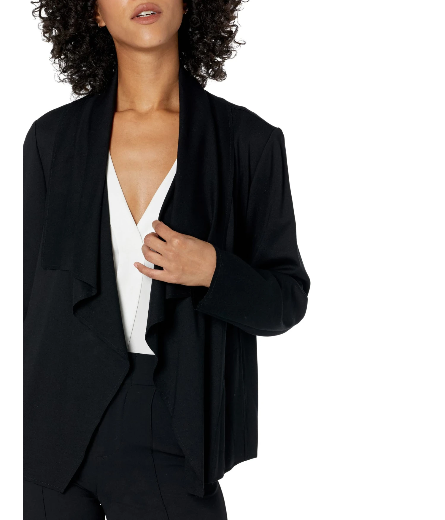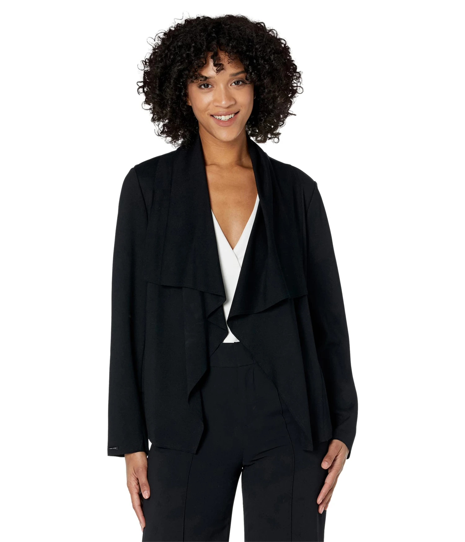 - Complete your casual yet sophisticated look with the Anne Klein® Serenity Drape Front Jacket. From work to a laid-back afternoon, a must-have essential for versatile styling.