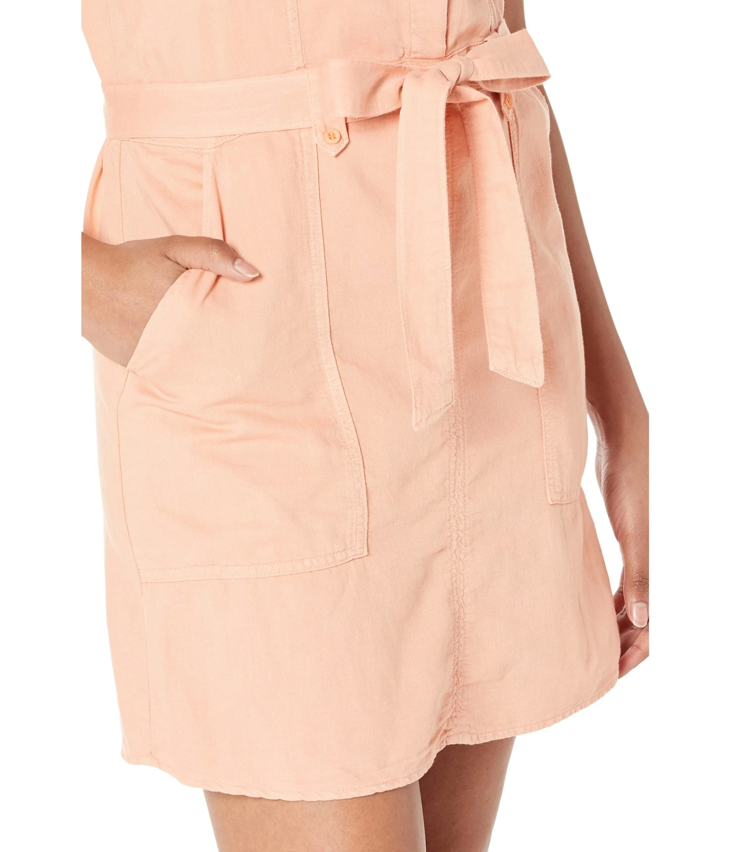 - Self-tie detailing on the waist with belt loops.