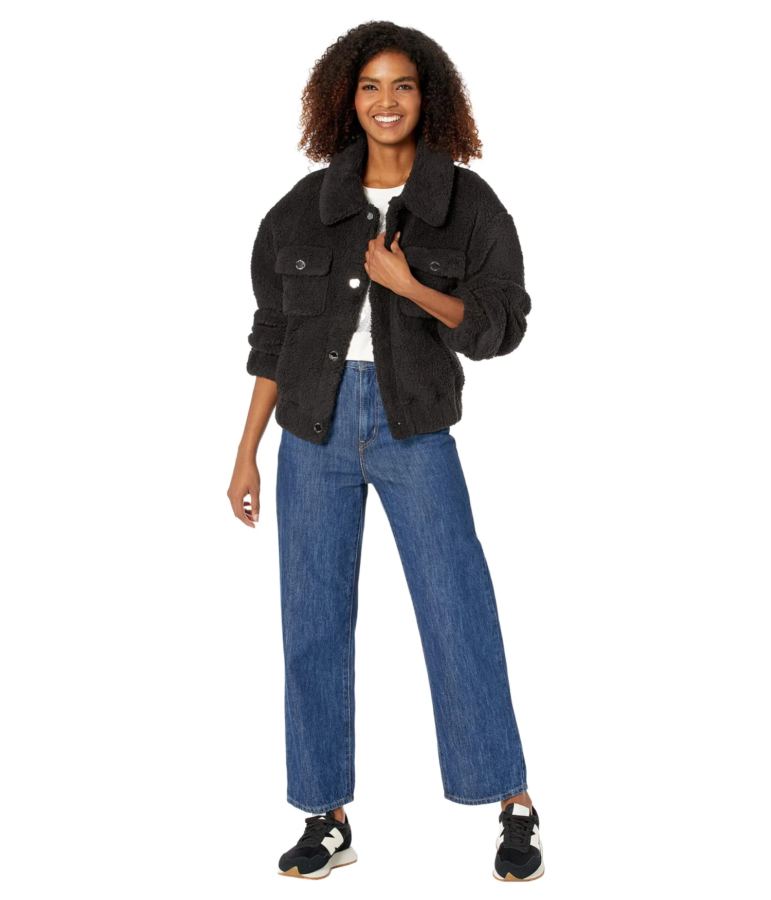 - Look gorgeous in the oversized and fluffy Calvin Klein® Button Front with Pockets jacket.