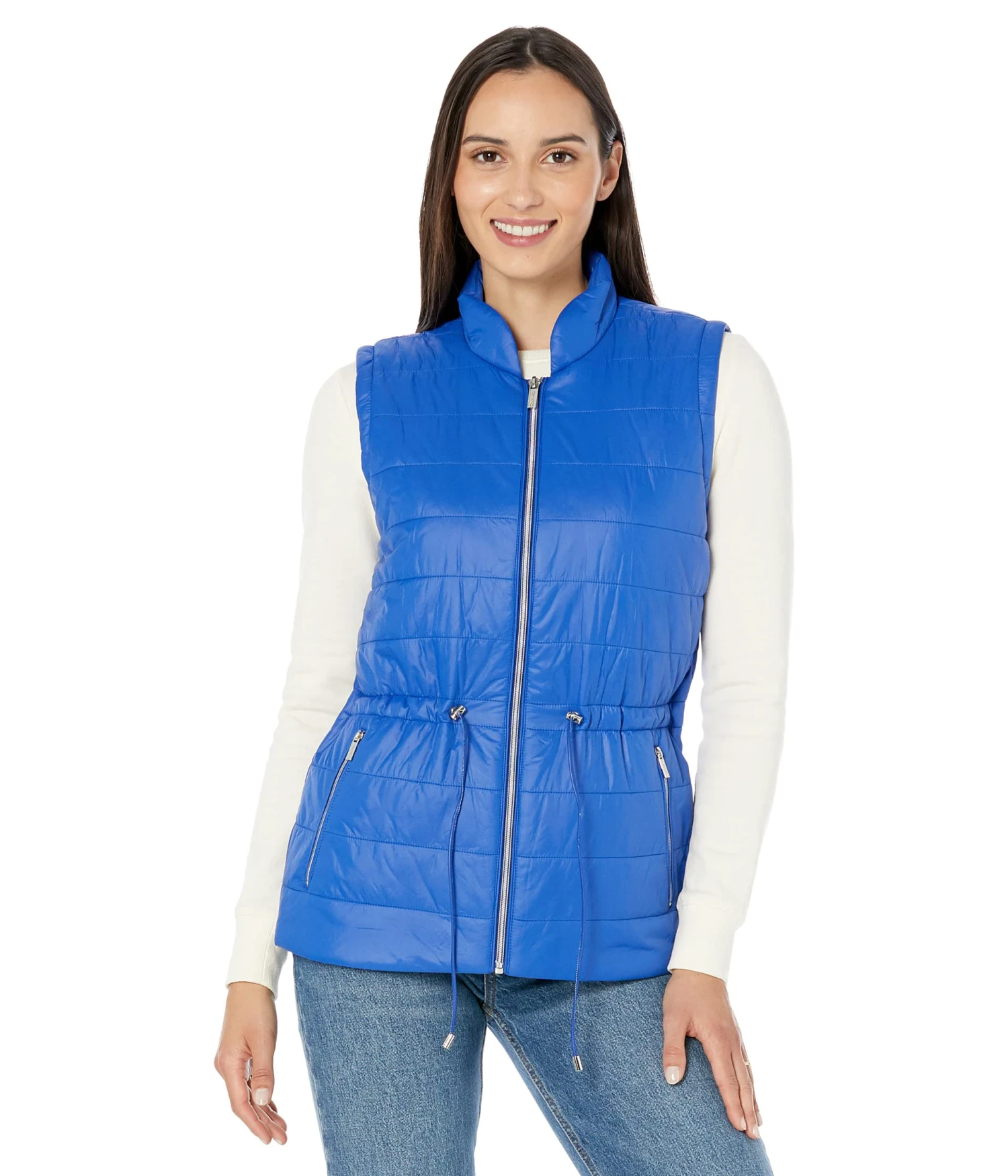 - Take your cold-weather look to another level wearing the stylish yet cozy Calvin Klein® Cinch Waist Zip Pockets vest.