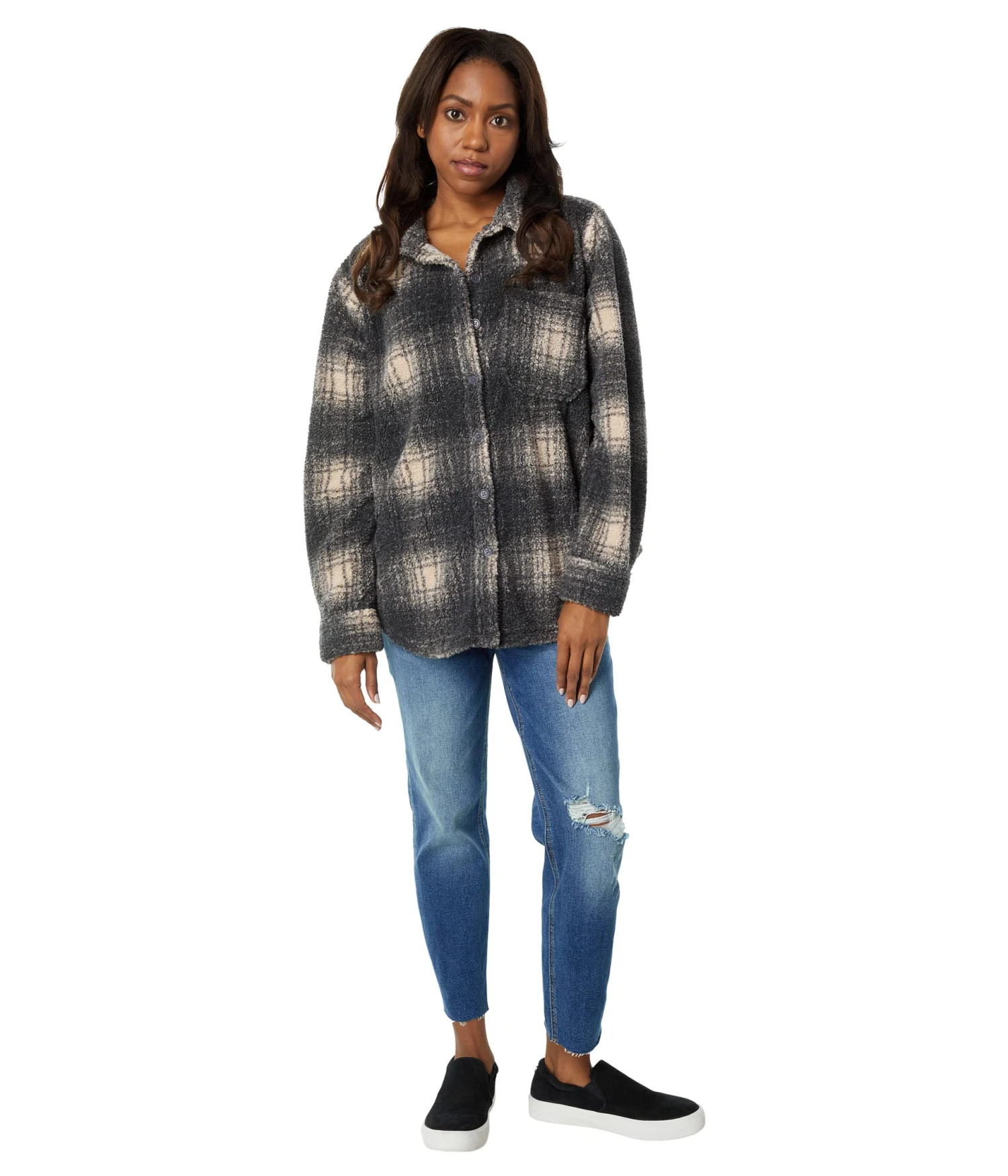 - Super-comfy plaid shirt with soft Sherpa lining offers elevated warmth and comfort.