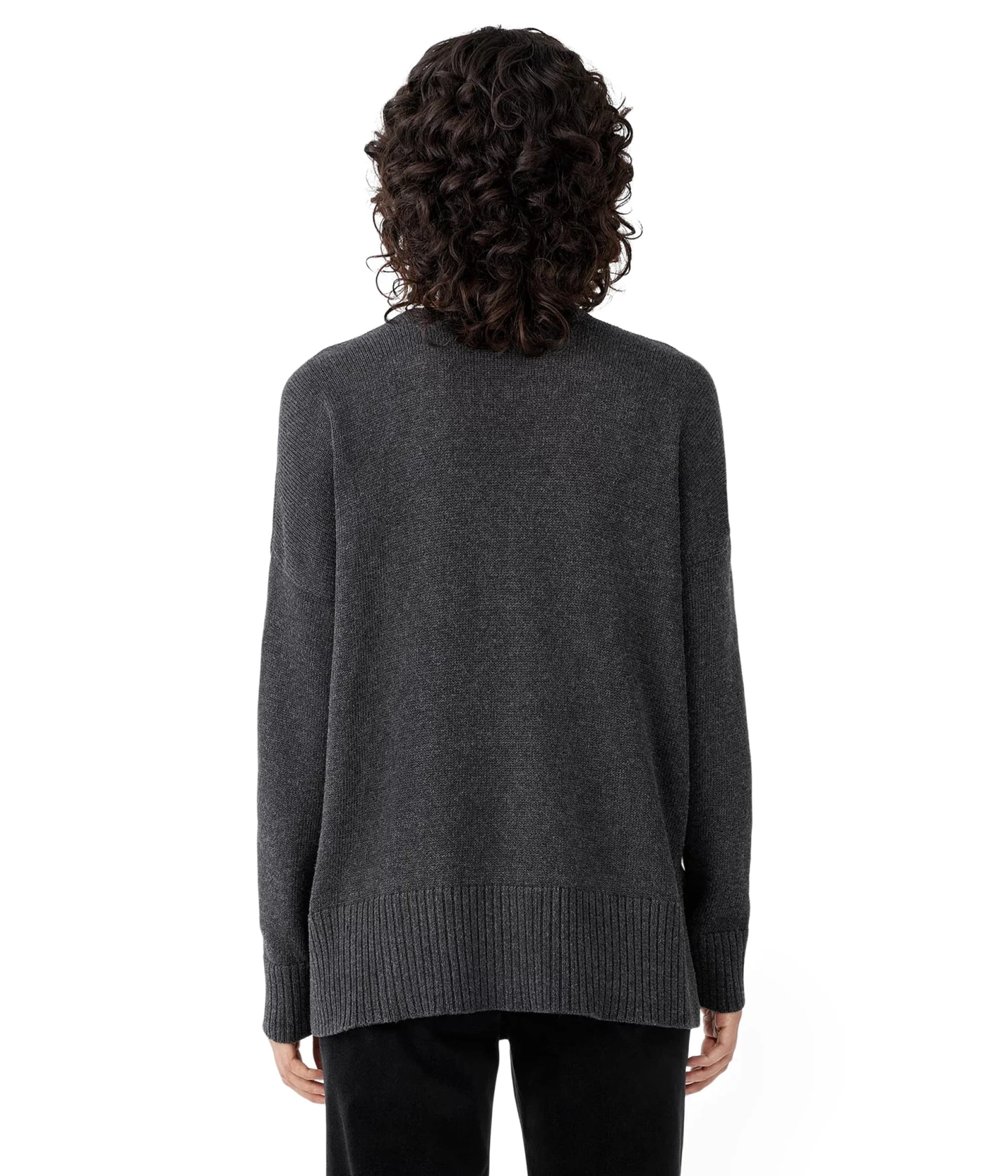- V-neckline and long sleeves.