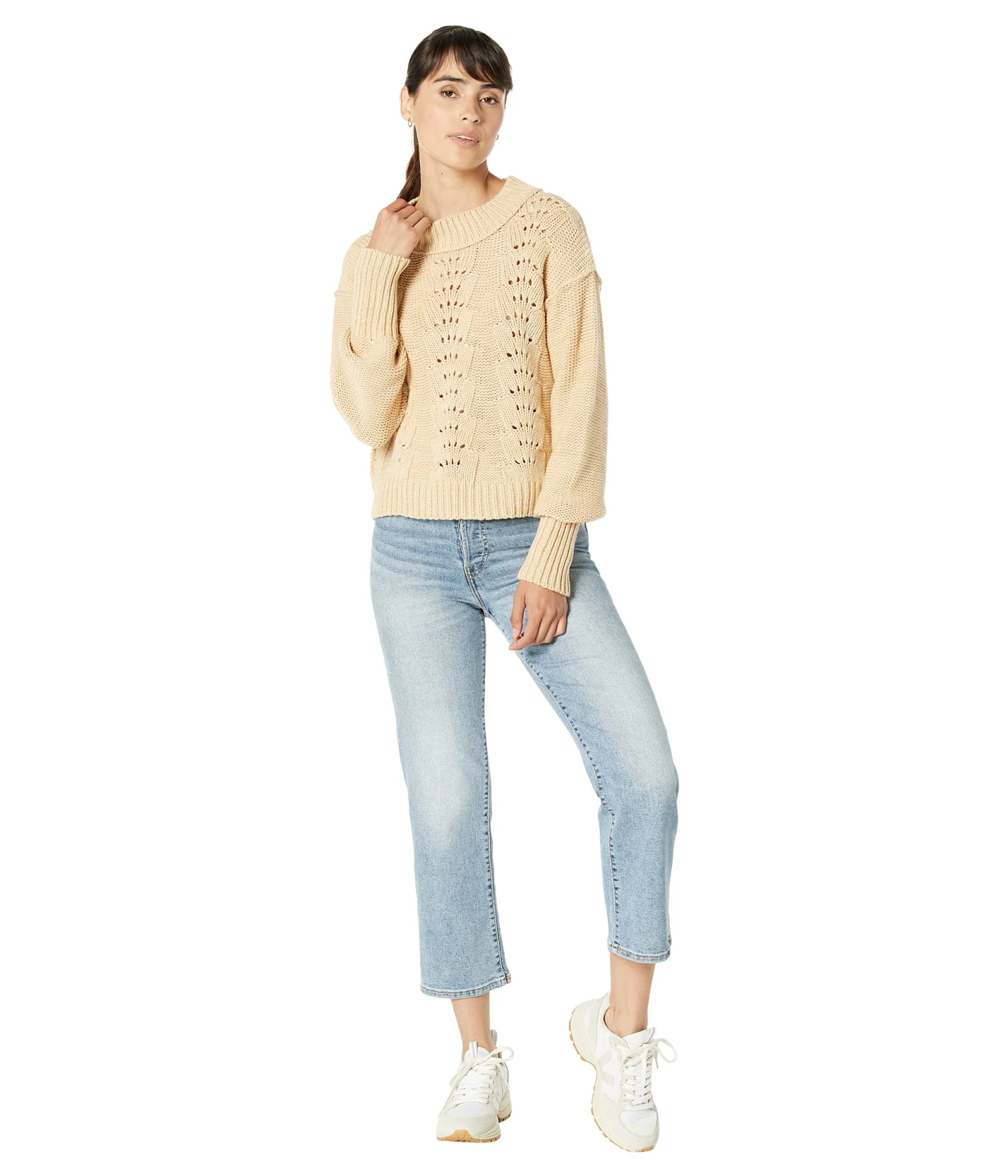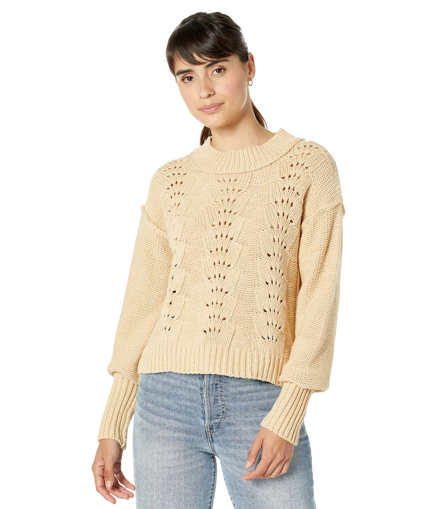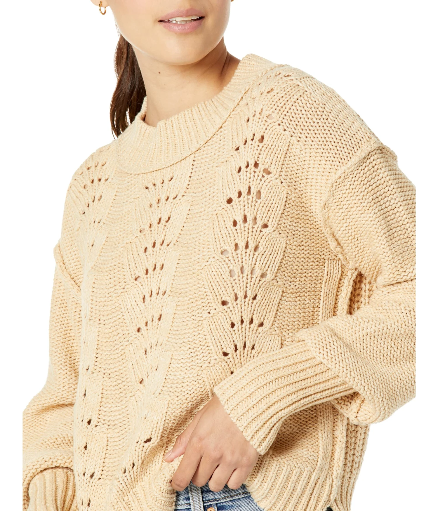 - A perforated detailing all over makes the Free People™ Bell Song Pullover Sweater look fashionable.