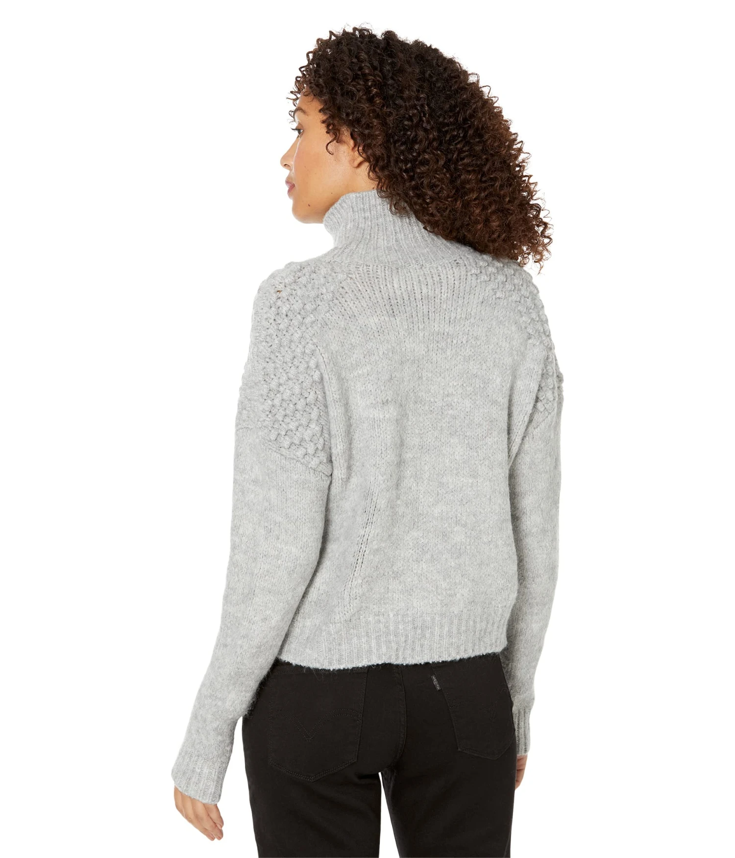 - Foldover high neckline.
