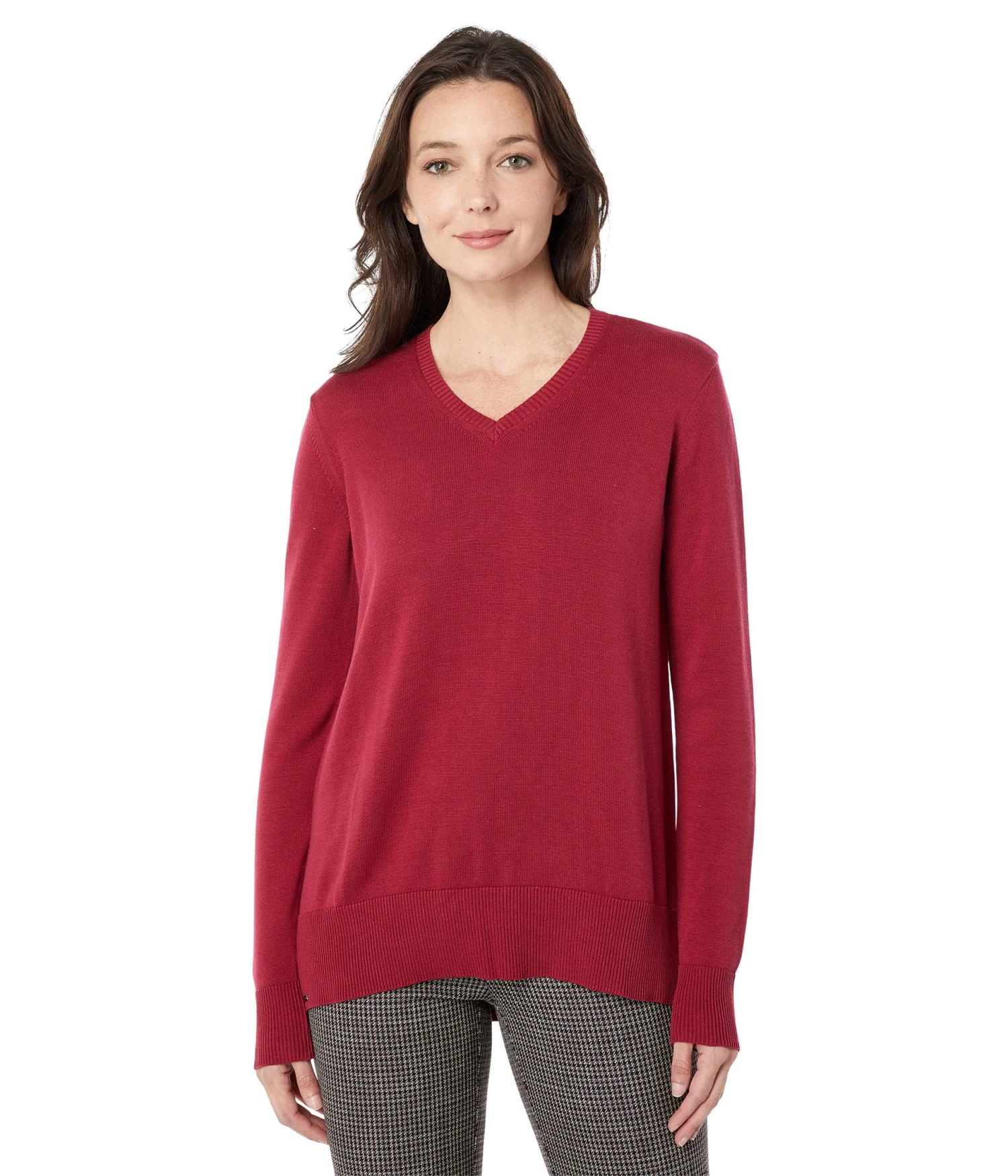 - Everyday wear gets elegant and chic with this Lisette L® Montréal Ellie Organic Cotton V-Neck Sweater. Pullover top with V-neckline flaunts long sleeves in a relaxed-fit design.