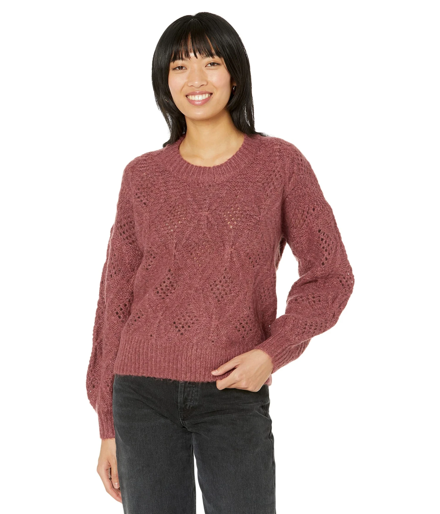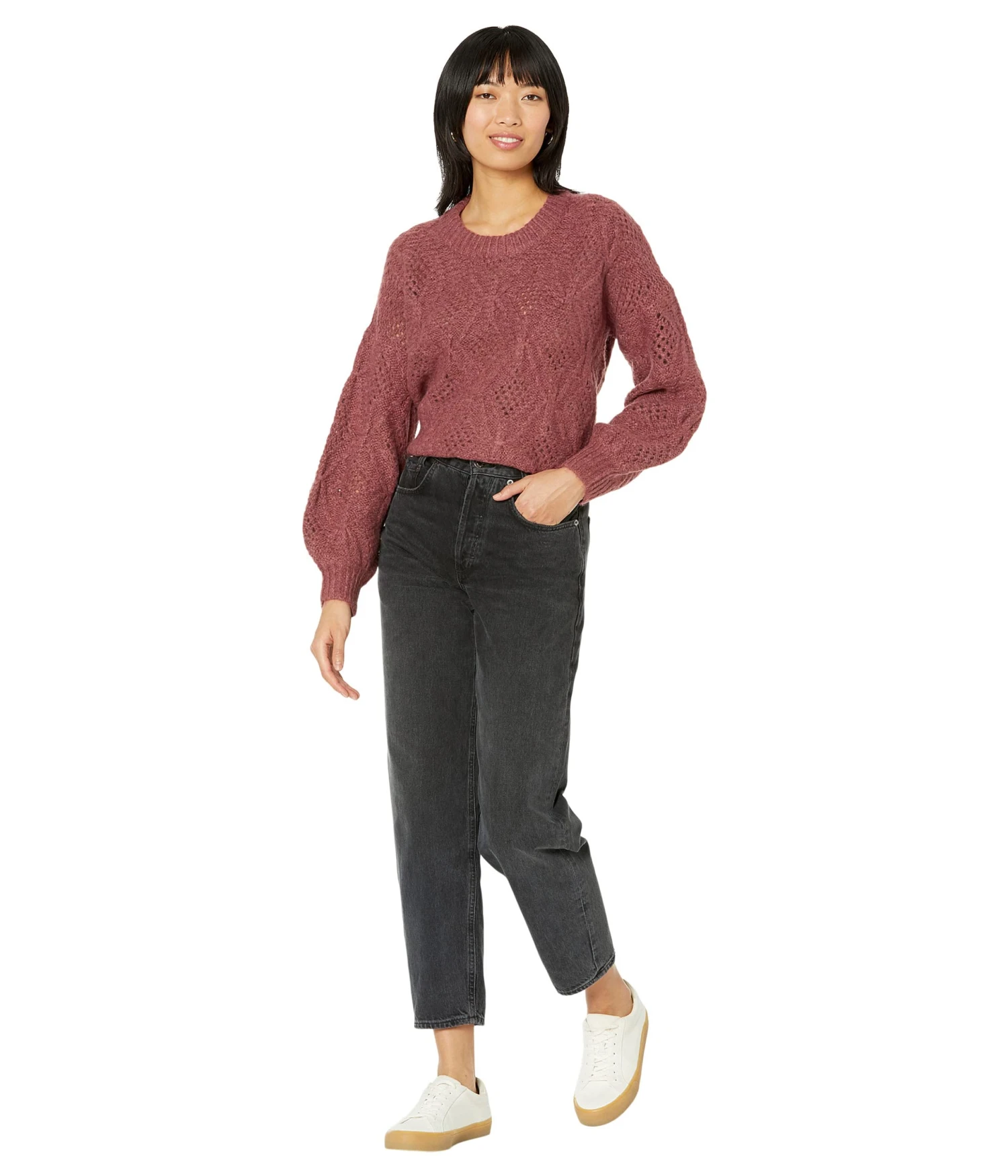 - Give your sweater style an upgrade in the chic Madewell® Cayden Pointelle Balloon-Sleeve Pullover.