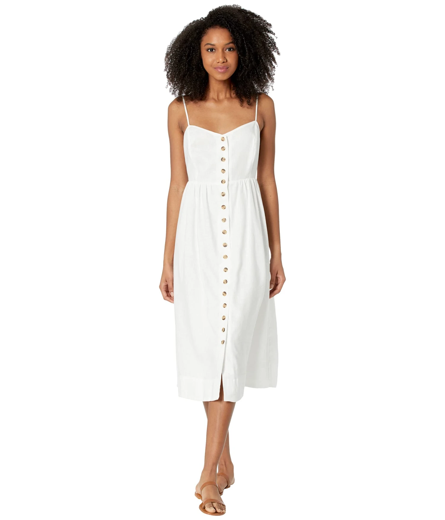 - The Madewell® Linen-Blend Cami Button-Front Midi Dress is lightweight elegance.
