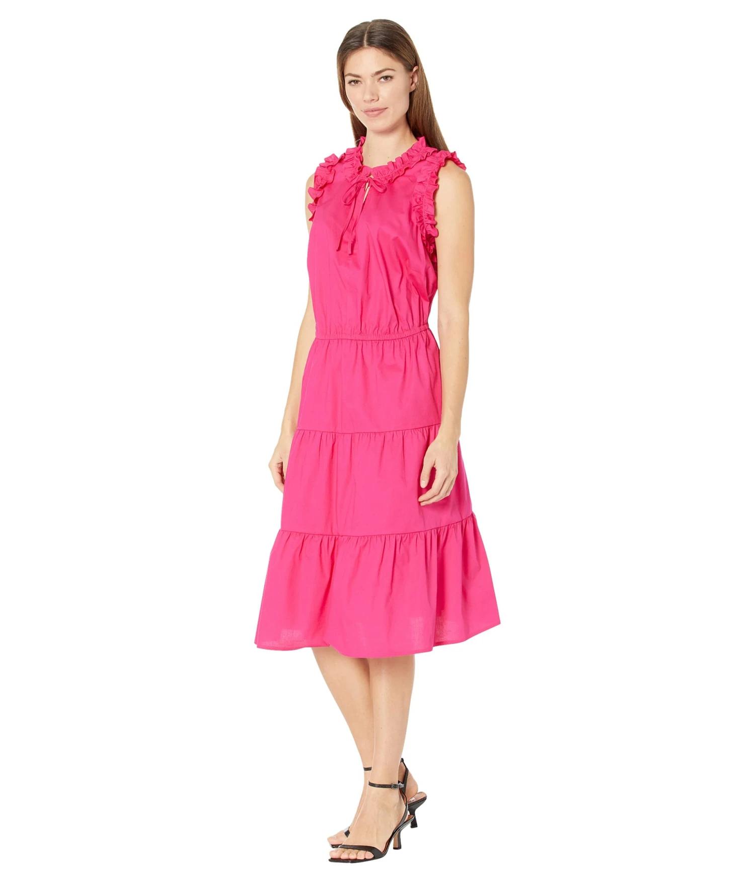 - Cute and graceful, the Maggy London™ Plus Size Midi Dress with Flounce and Tiered Bottoms is a perfect choice to dress up for a date or outing.