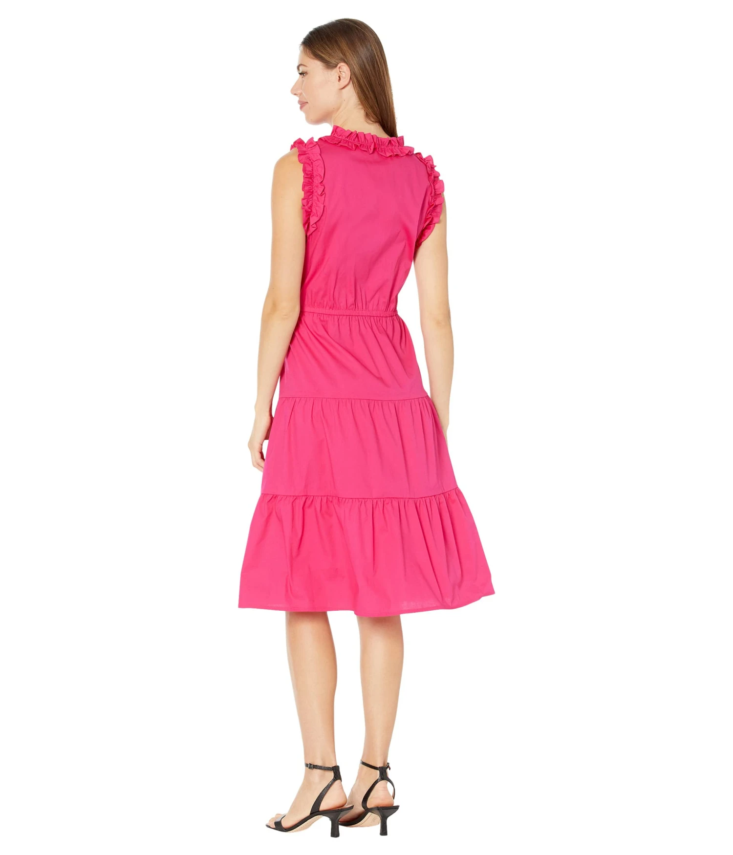 - Sleeveless construction with ruffle detailing.