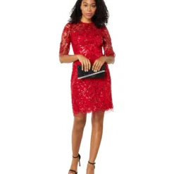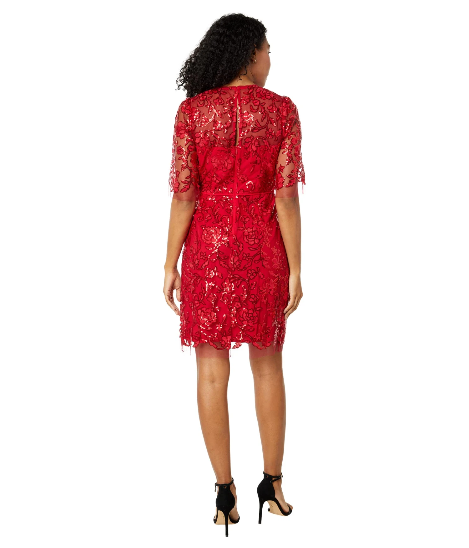- Maggy London™ Short Sequin Dress with Mid Length Flare Sleeves and High Neckline offers an alluring look with its short-length silhouette.