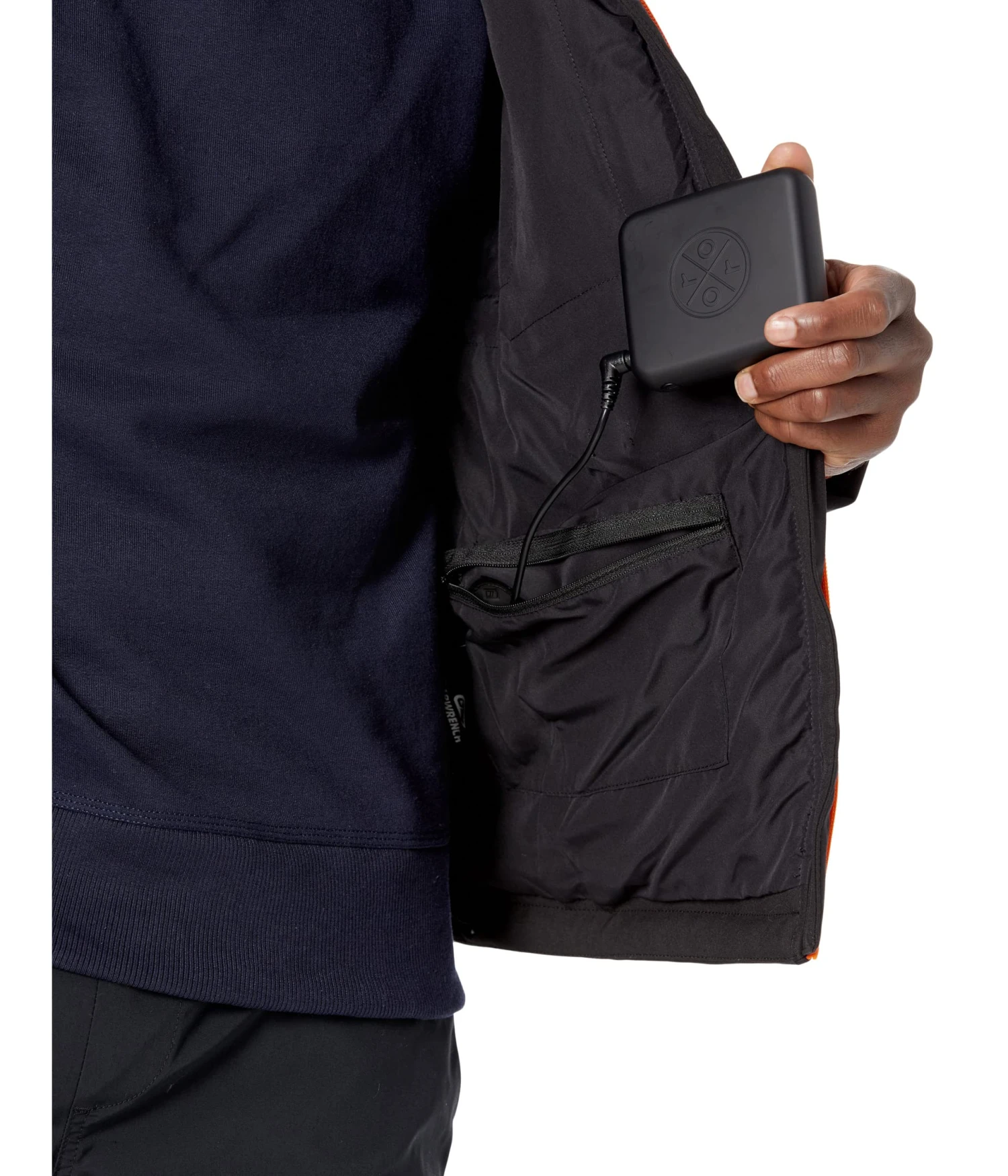 Lining: 100% polyester. - Disconnect and remove the battery from the zipper pocket, put the connector back, and zip up before washing the apparel.