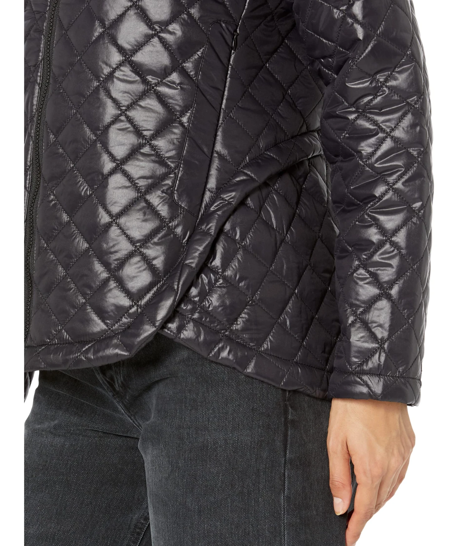 - Accentuate your chic style this chilly weather season in the Sam Edelman® Hooded Quilted Mid Length jacket.