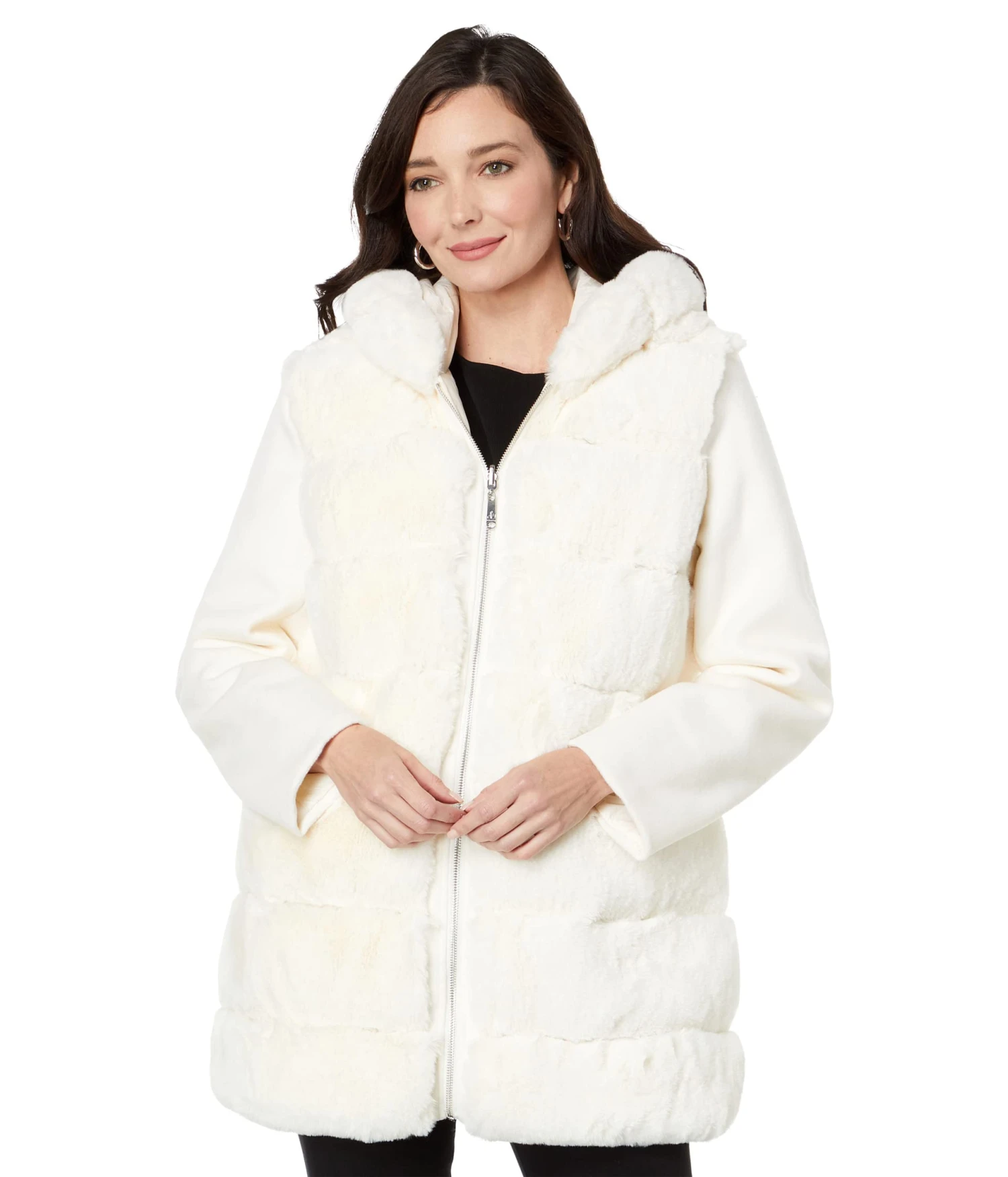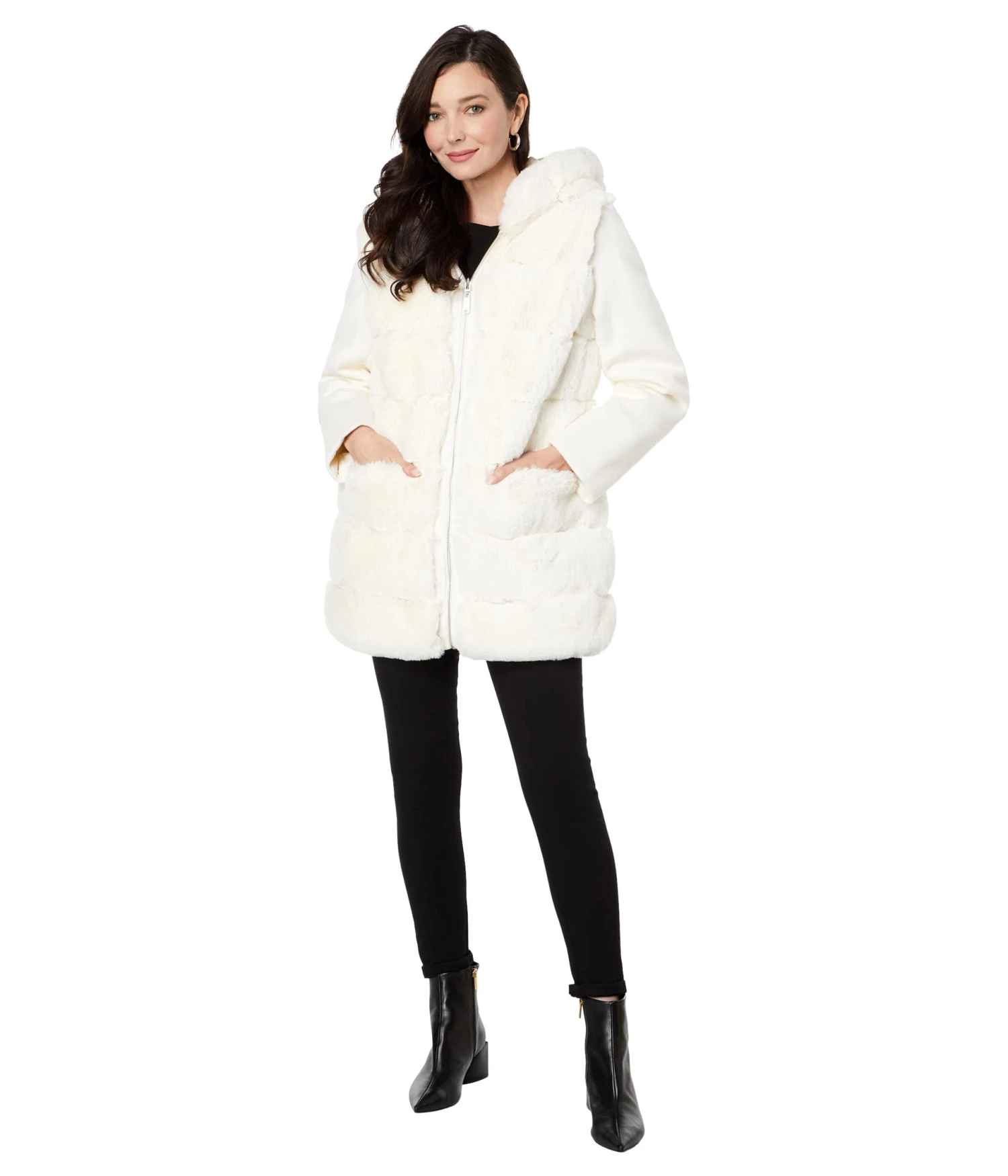 - Stay cozy and look elegant wearing Sam Edelman® Mixed Media Faux Fur coat.