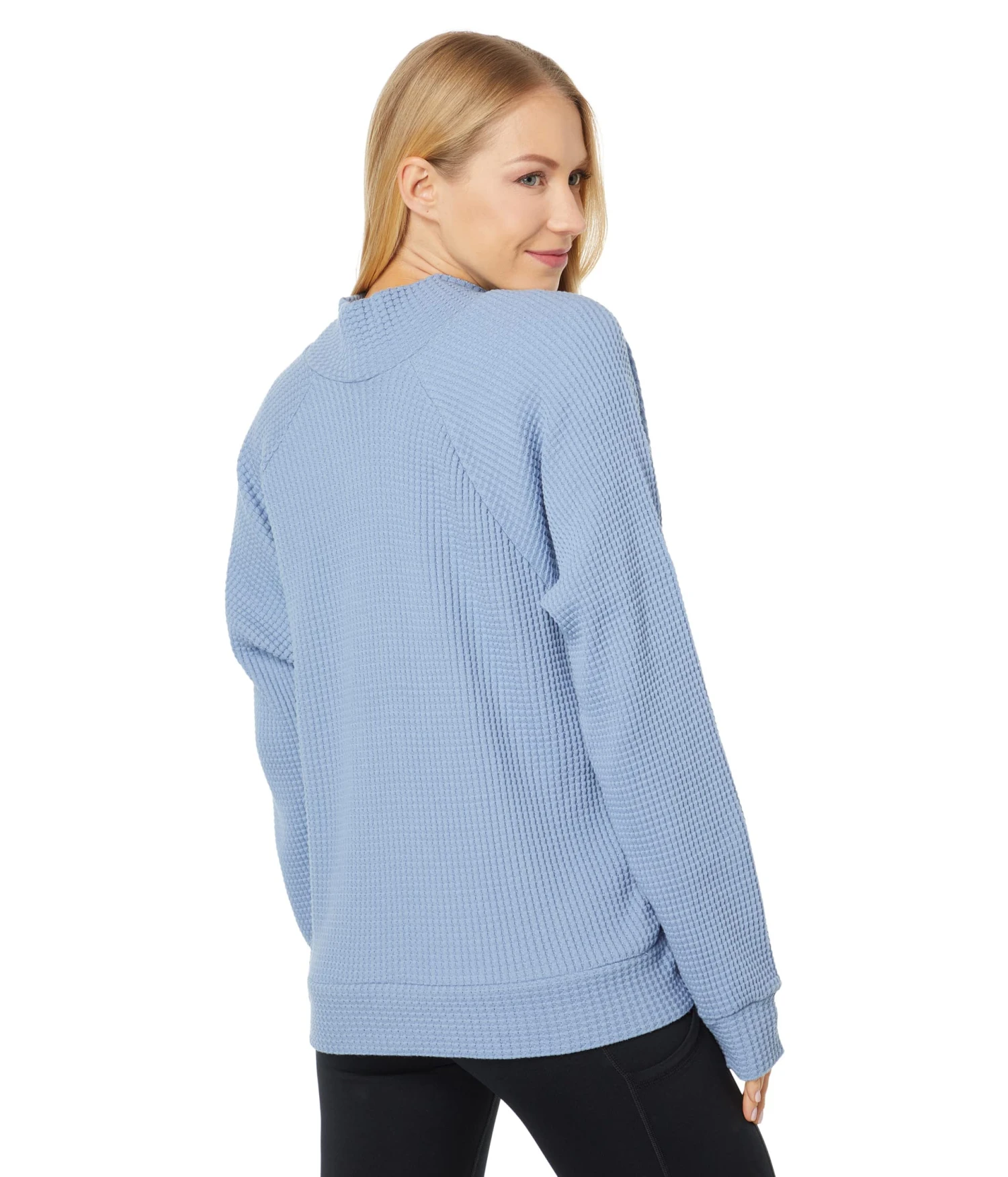 - This pull on sweater features a mock neckline with long sleeves and a ribbed texture throughout.