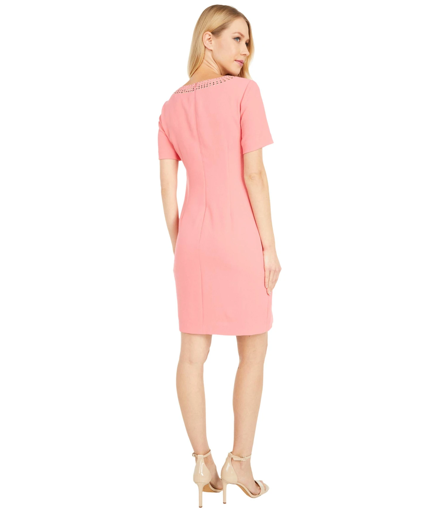- Complete your look with the Trina Turkâ„¢ Heatwave Dress featuring a sheath silhouette, a multi-colored stone embellishment detail, and a solid colorway on a poly fabrication.