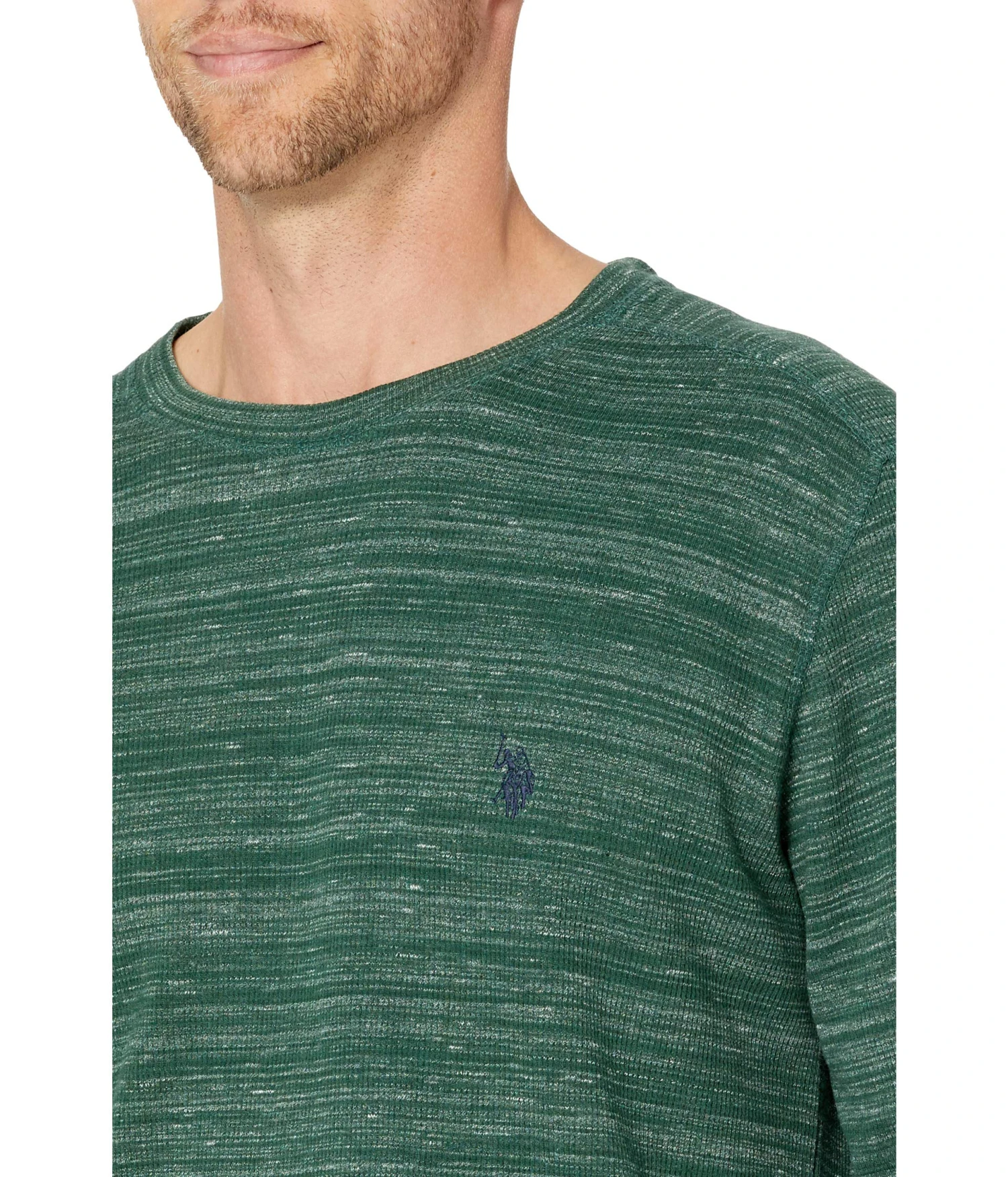 - A day of running errands never felt or looked so good wearing the cotton-blend U.S. POLO ASSN.® Long Sleeve Space Dye Crew shirt.