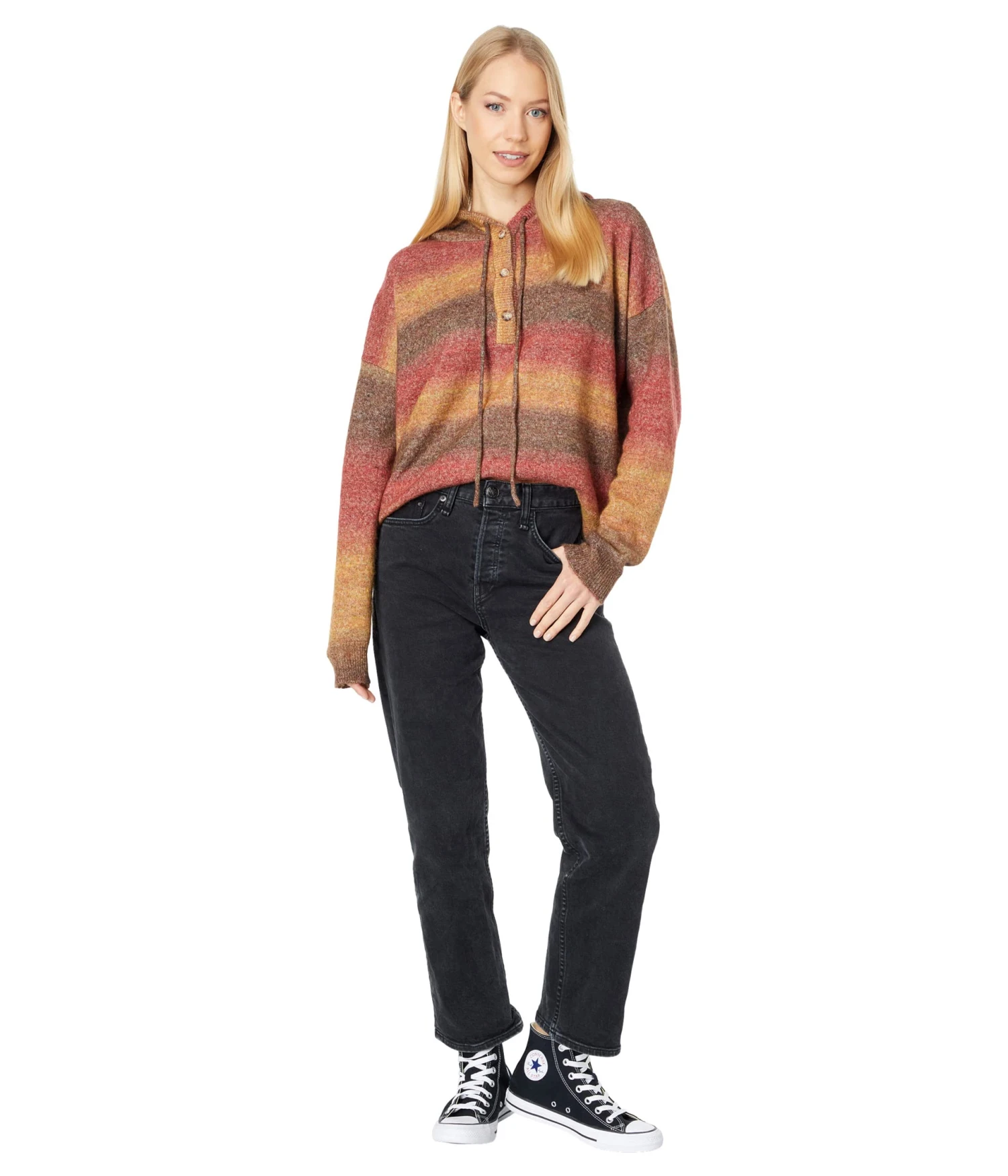 - Crafted for an all day style, warmth, and comfort, the Volcom® Was It You Sweater features a mock hooded collar with adjustable drawstrings, center front three-button closure at neckline, long sleeves with ribbed fitted cuffs, horizontal color-block stripe inspired design, and a lightly cropped straight ribbed hemline.